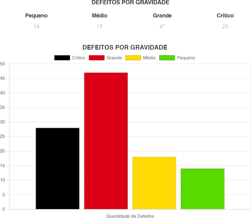 Softwares são testados principalmente para se descobrir erros. O QualiGO permite, por meio de gráficos e elementos visuais, averiguar e indicar o nível de qualidade do software sob o ponto de vista qualitativo, dispondo de informações a respeito dos defeitos encontrados no processo de desenvolvimento. A seguir, são listadas possibilidades de visualização dessas métricas de forma segmentada e organizada.